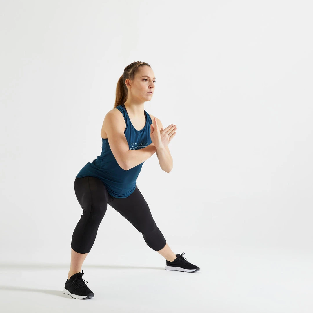 The ultimate long tank top for fitness that is offered in a printed version so that you don’t have to sacrifice style while exercising.