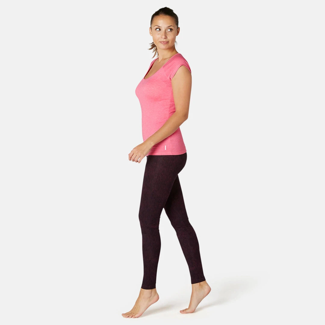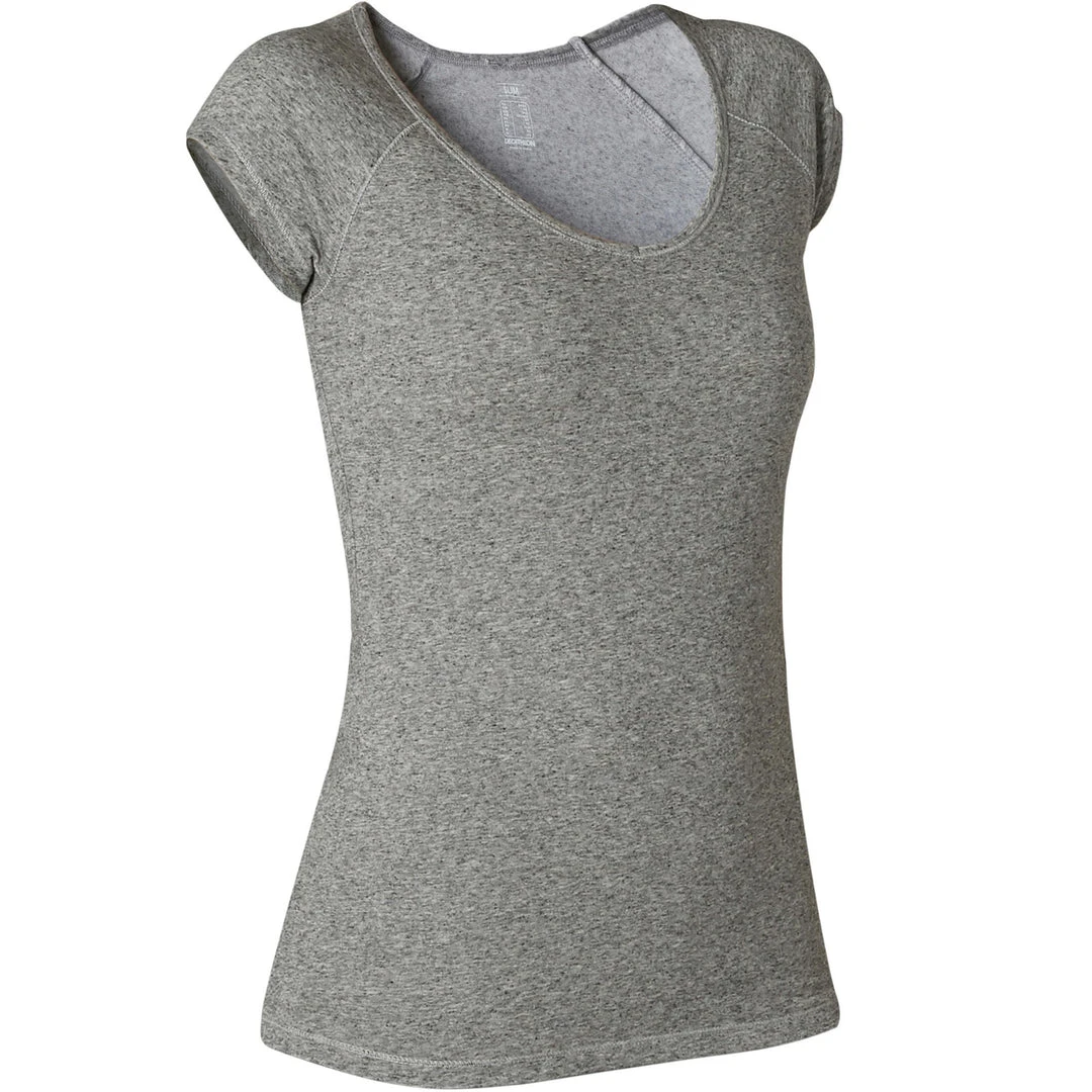 Because we’re all different, our gentle gym and Pilates T-shirts come in 2 different styles: slim and regular fit. The slim-fit T-shirt enhances your figure with its close-fitting cut and attractive V-shaped neckline. You’ll love the soft cotton and the light, breathable material. Your ally during regular, moderate fitness activities for exceptional comfort throughout your workout.