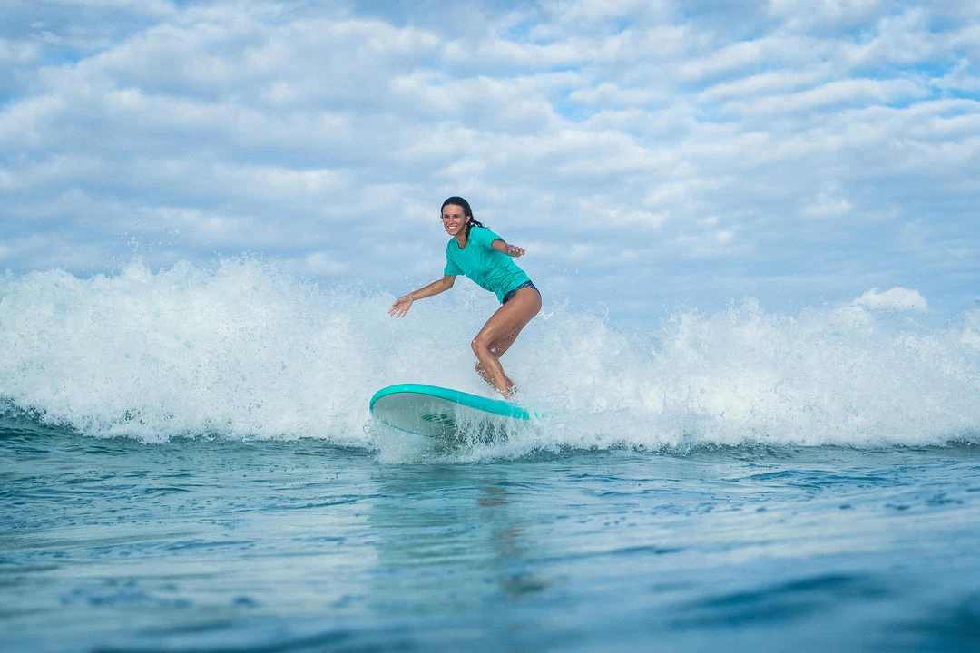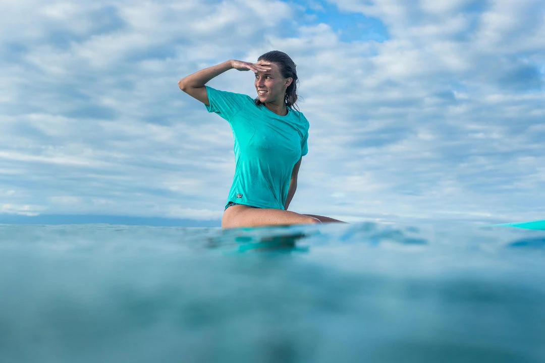 As female surfers of all levels, we have designed this UV-resistant T-shirt for beginner surfers surfing in the foam.