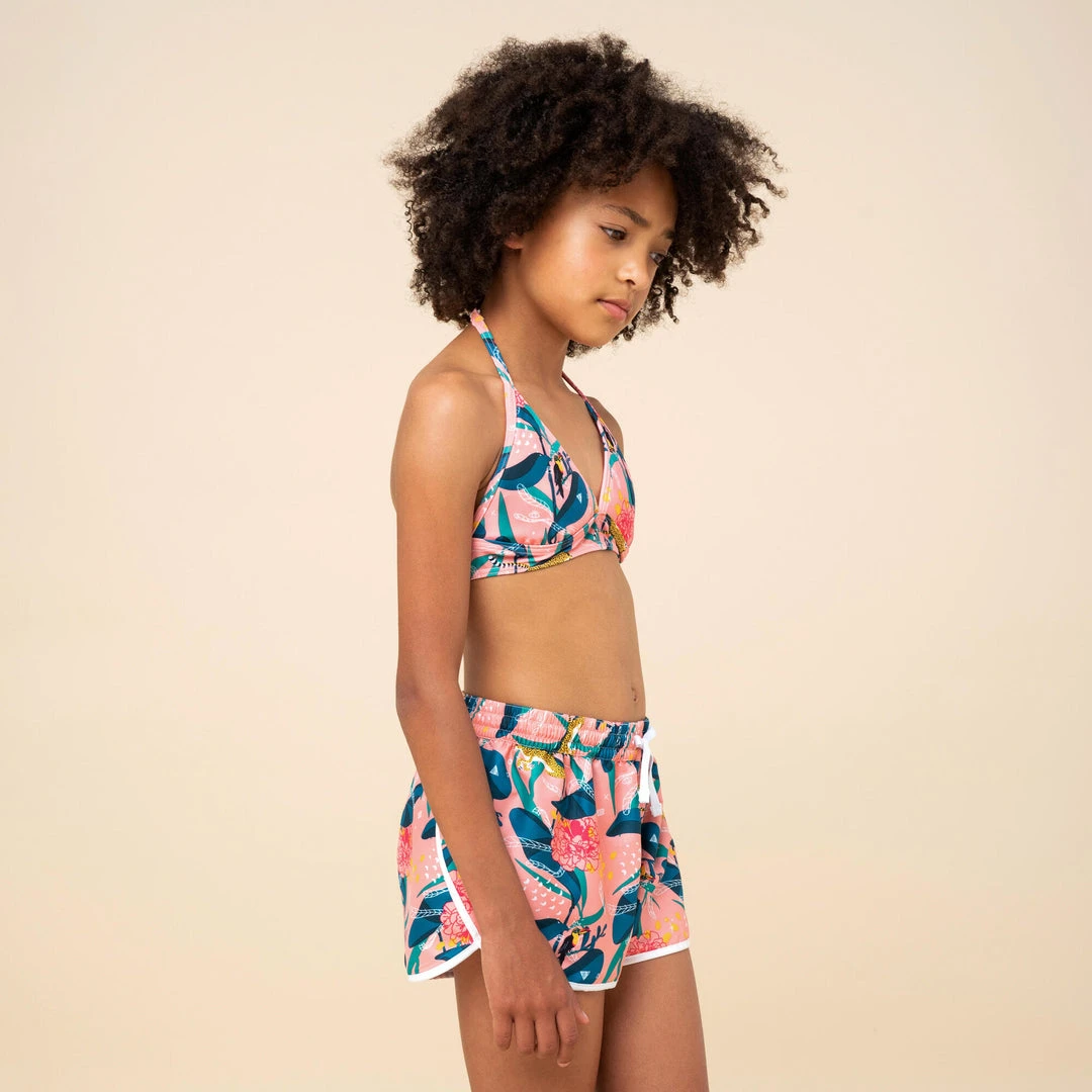 - Pair this swimsuit top with matching boardshorts for a complete swimwear look. The **Olaian 100** collection is designed to provide maximum comfort and freedom of movement for active kids.