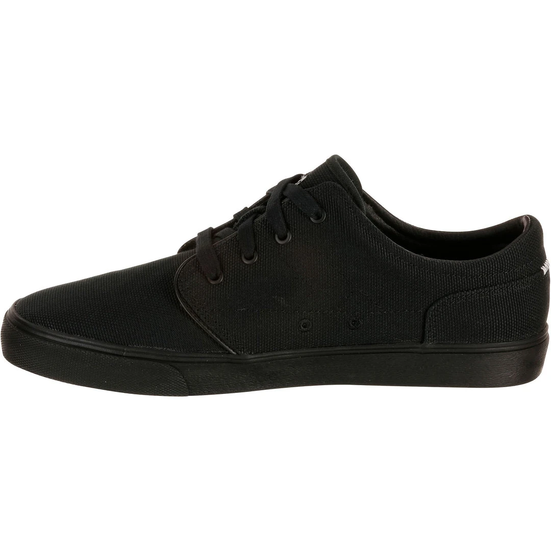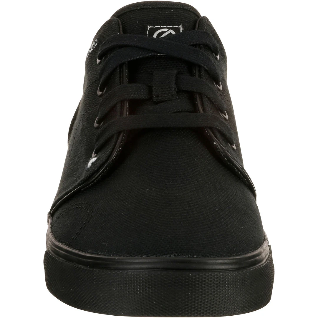 Skate shoes with a canvas upper and vulcanized sole, perfect for skateboarding, longboarding, or scootering.