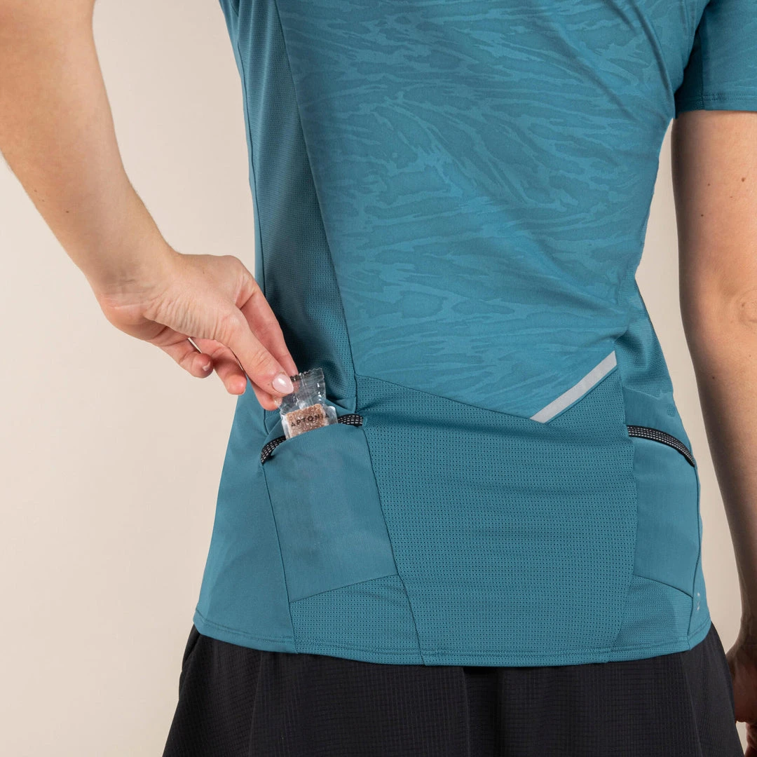 The slim-fit zipped trail running T-shirt is great for your short and long distance trail runs (training/competition).