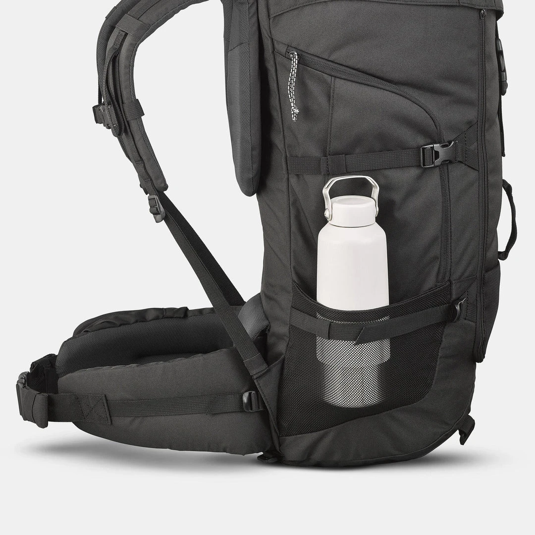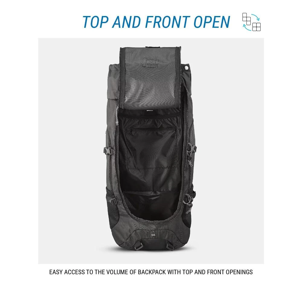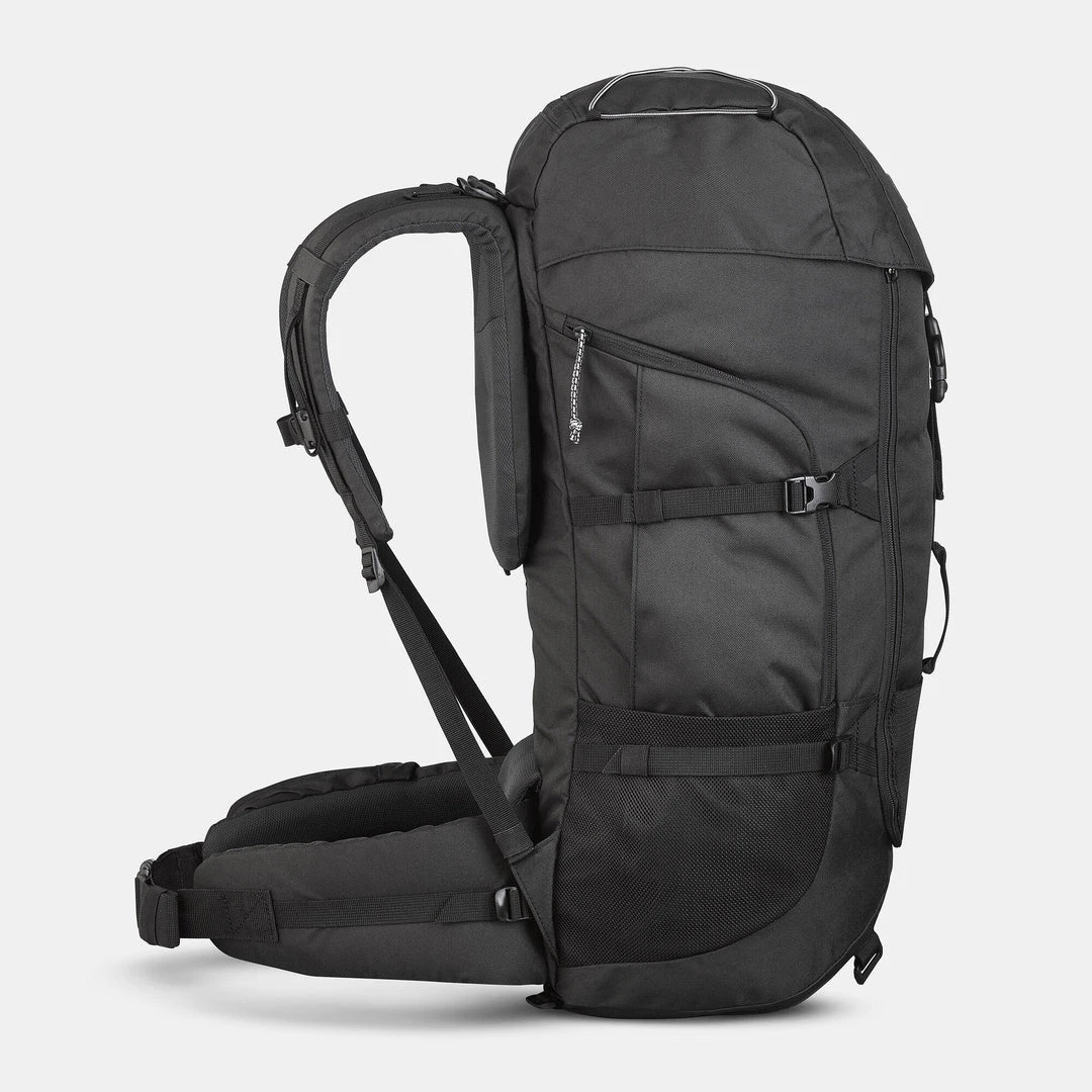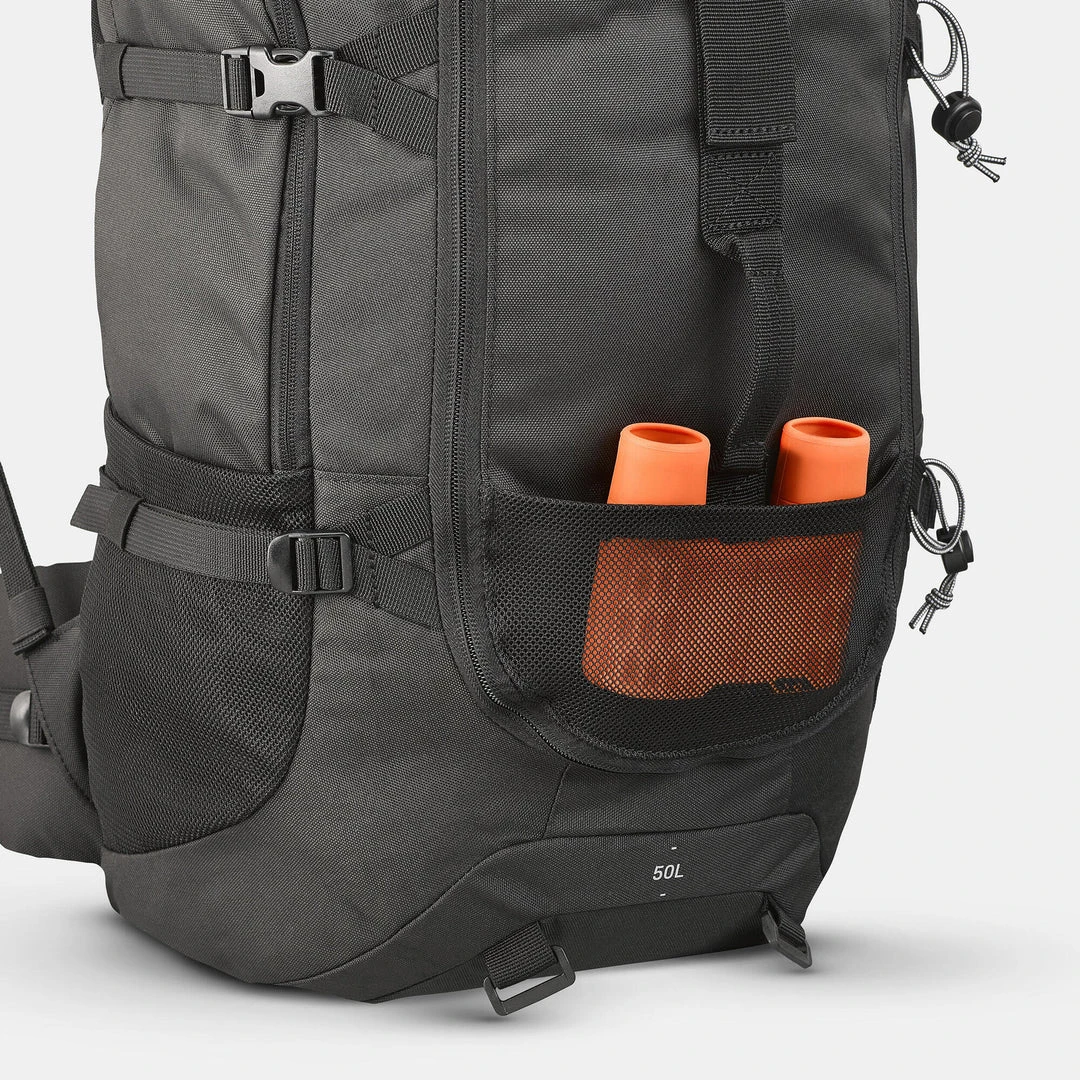 A simple and functional bag with its pockets and front access, practical for occasional outings that require 50 L volume.