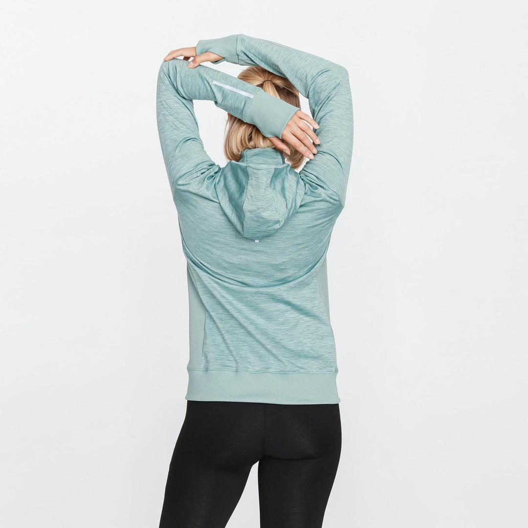 Stéphanie, our engineer, designed the long-sleeved jogging sweatshirt with a warm, breathable component to protect you from the cold when out jogging.