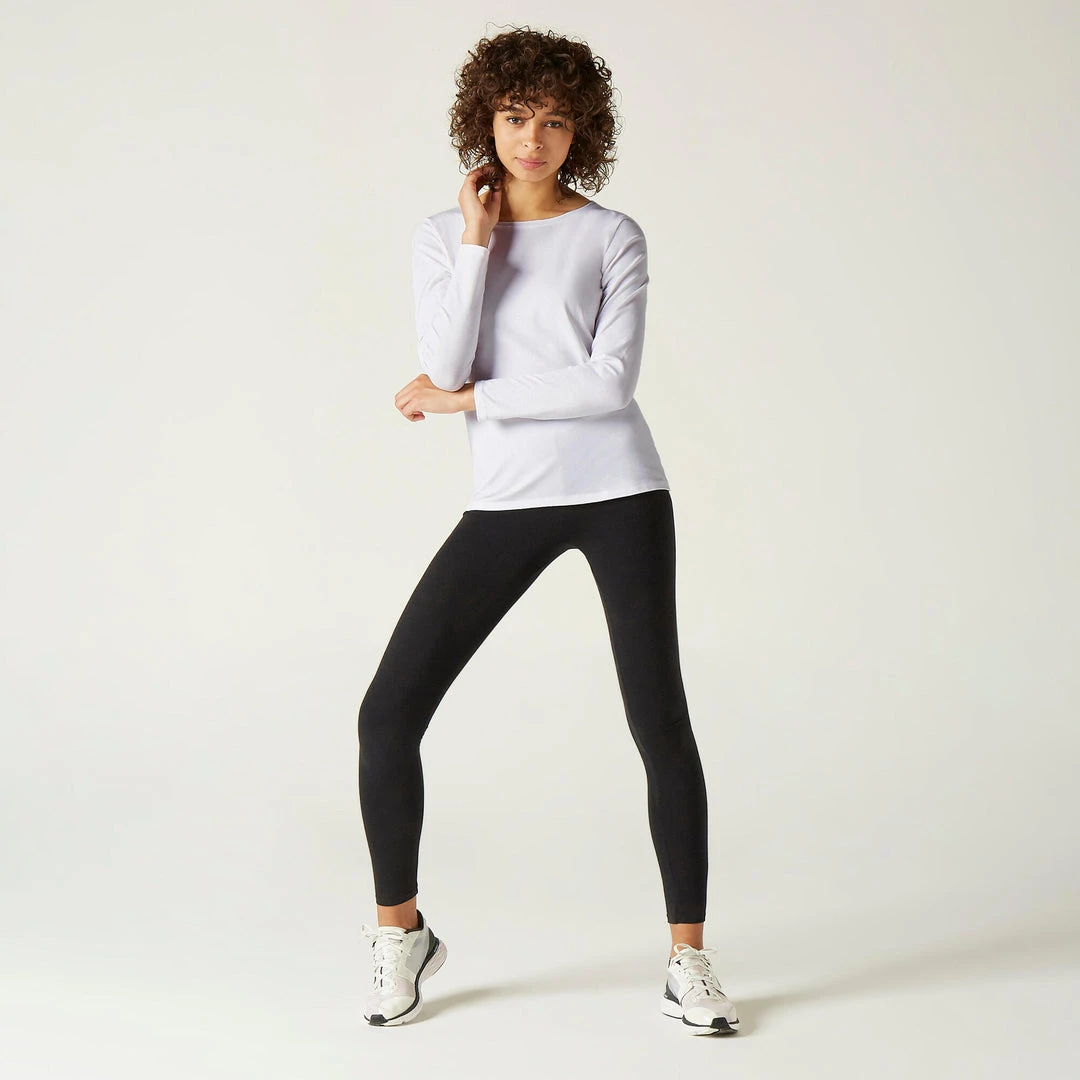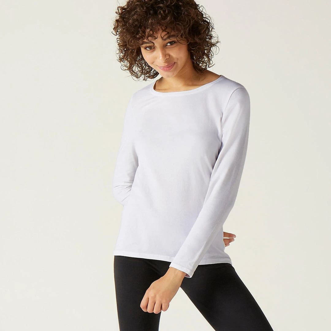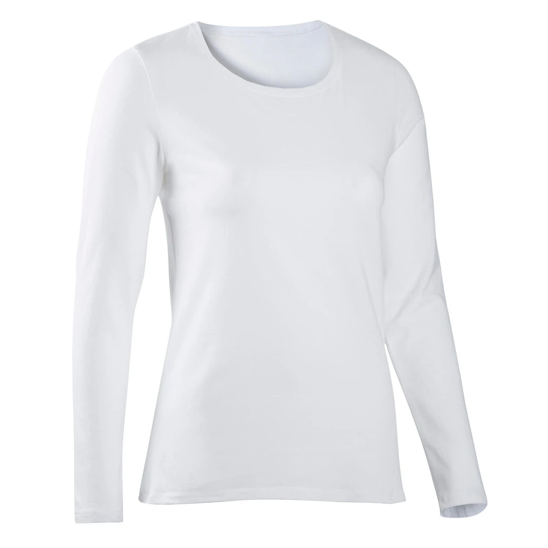 - Experience unmatched comfort with the Nyamba 100 Women’s Long Sleeve Cotton Fitness T-Shirt, designed for all your workout needs.