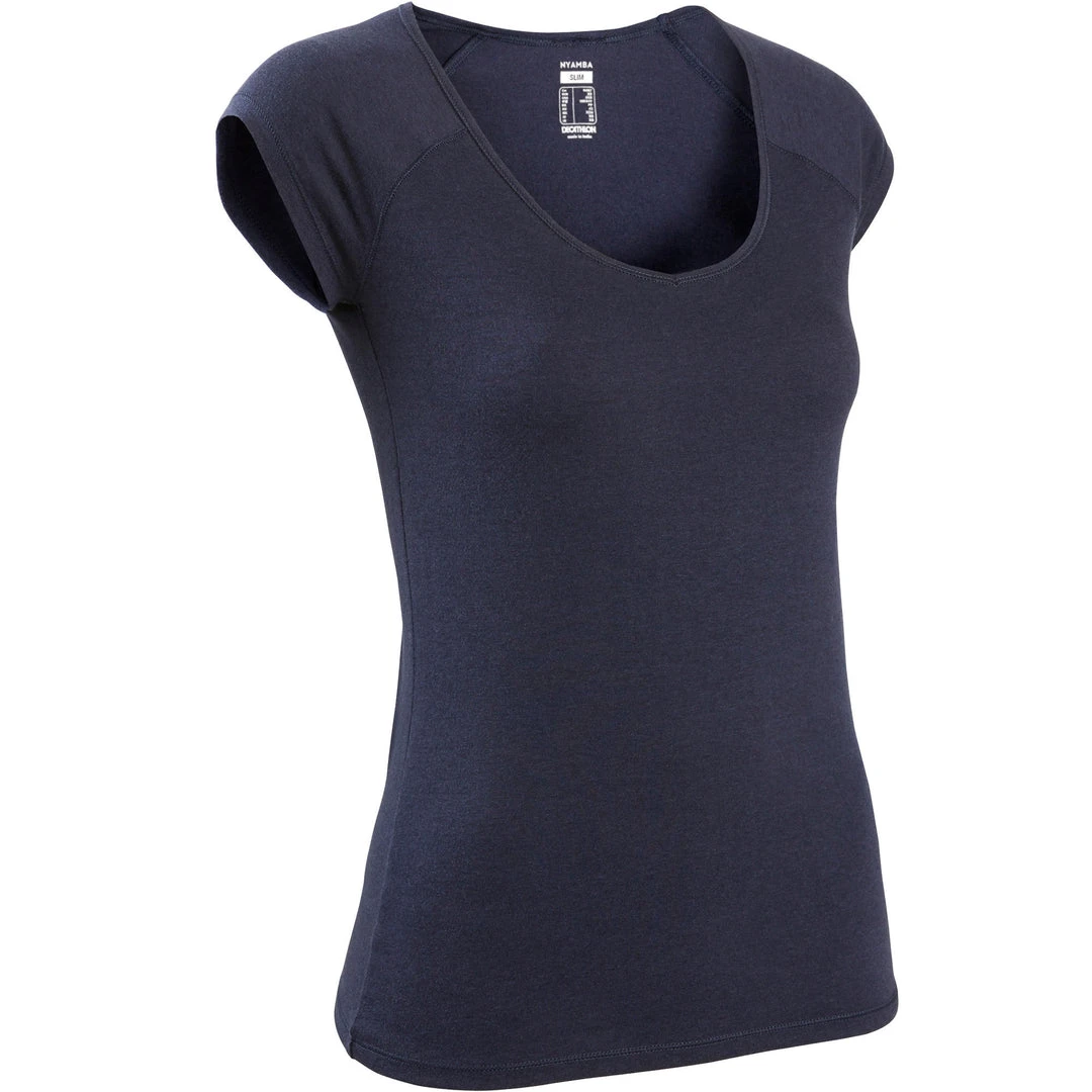 Because we’re all different, our gentle gym and Pilates T-shirts come in 2 different styles: slim and regular fit. The slim-fit T-shirt enhances your figure with its close-fitting cut and attractive V-shaped neckline. You’ll love the soft cotton and the light, breathable material. Your ally during regular, moderate fitness activities for exceptional comfort throughout your workout.