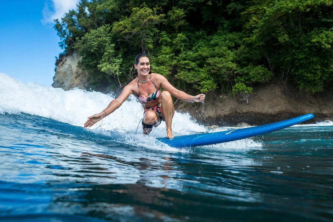 You are learning to surf or surf only a few times a year, during a vacation or on a surf trip. You stay where you can still touch the bottom of the sea floor, in tiny waves or broken waves. You surf for the joy of being in the water and for the feeling you get from it. During your sessions, you often fall, but you fall in waves that are not very powerful. We have designed a wide range of swimwear for you to suit your occasional practice and your body shape.