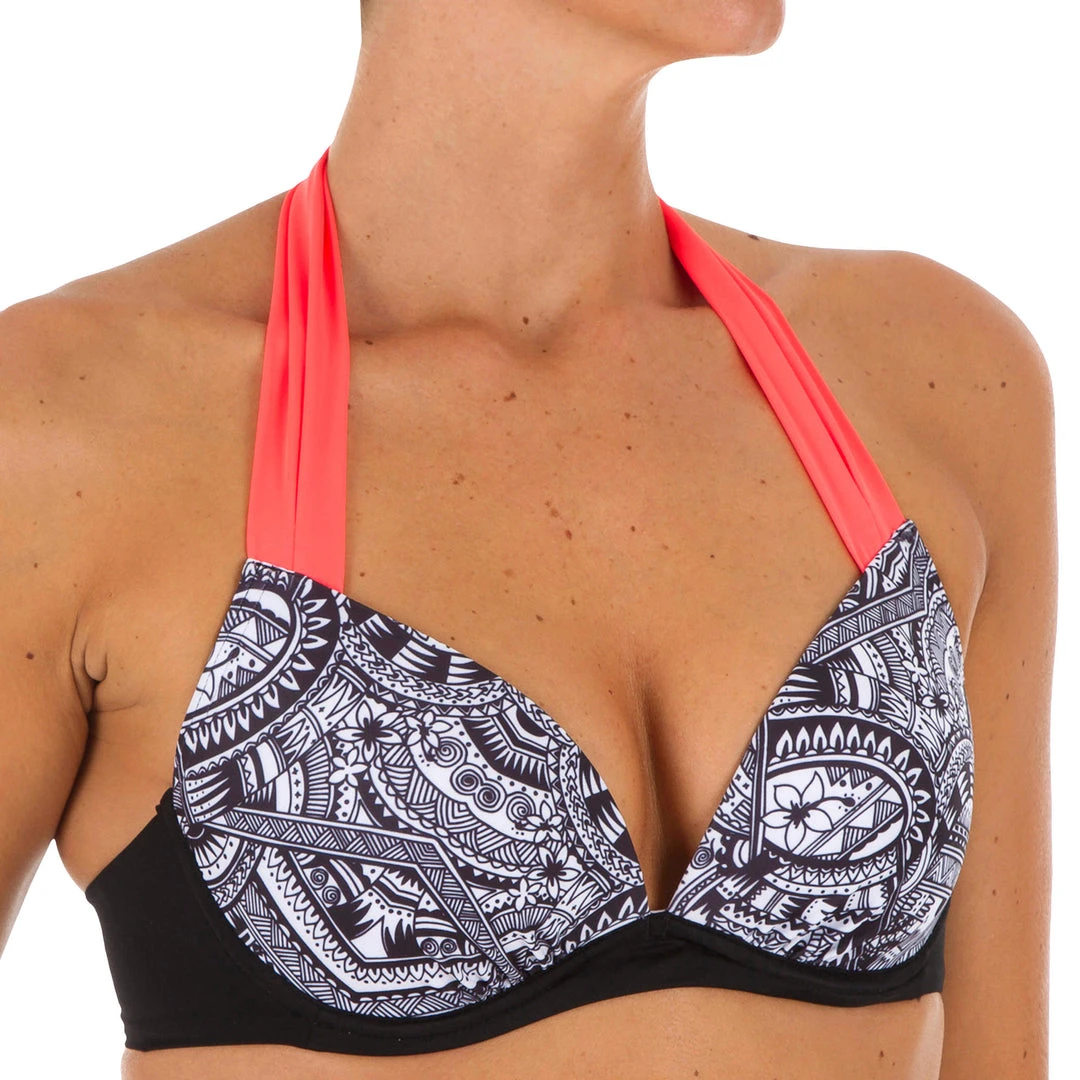 - Enhance your summer wardrobe with the Olaian Elena Push-Up Bikini Top. Designed with fixed padded cups, this bikini top offers exceptional support and a flattering fit.