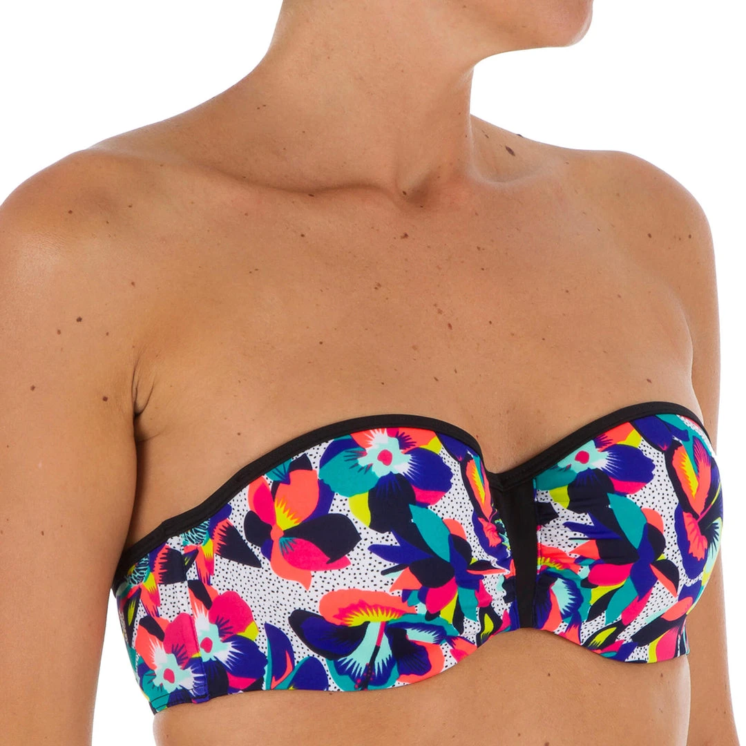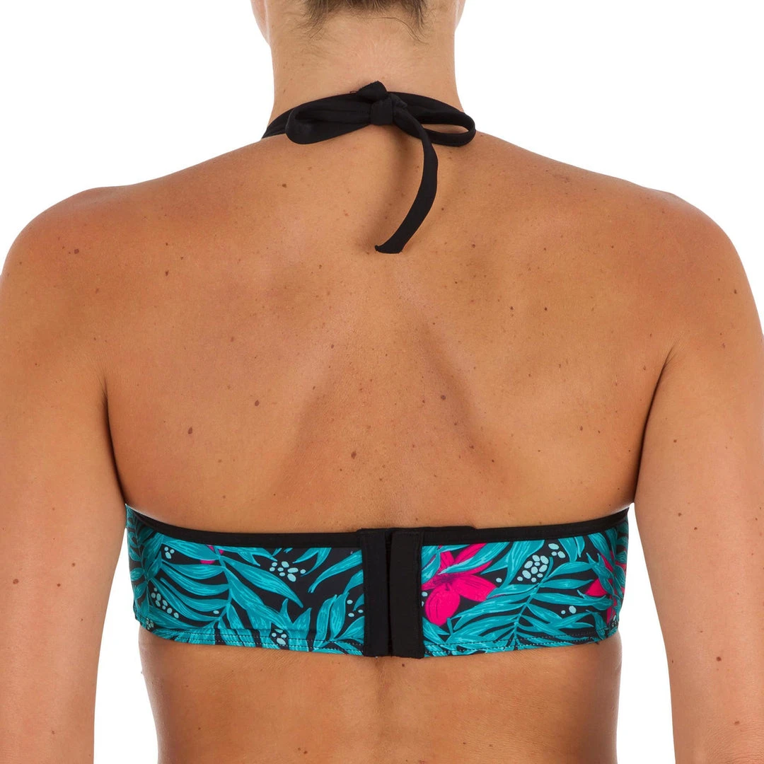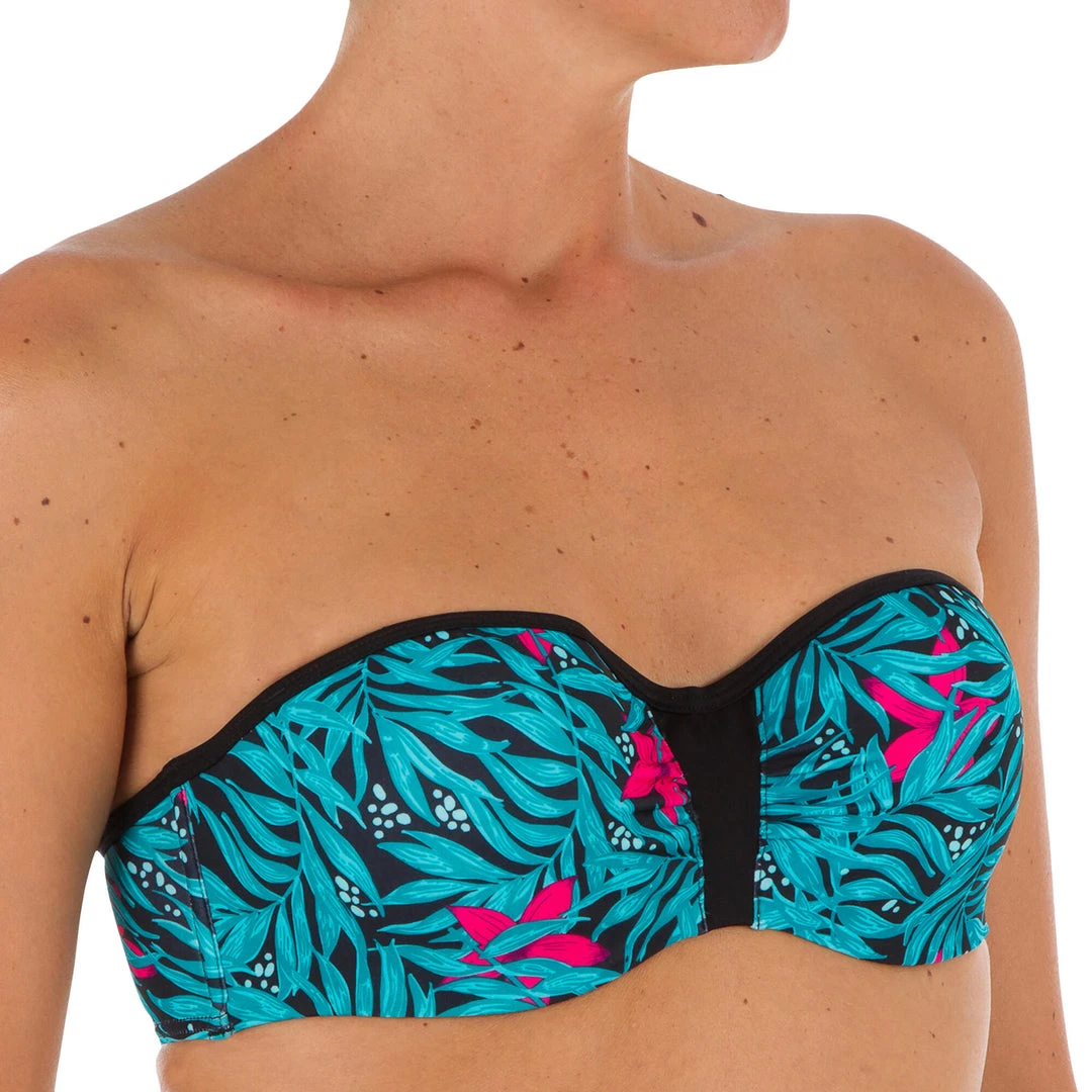 This underwired bandeau with fixed padded cups has a wide adjustable back that gives it good support while leaving you free to have your shoulders exposed.