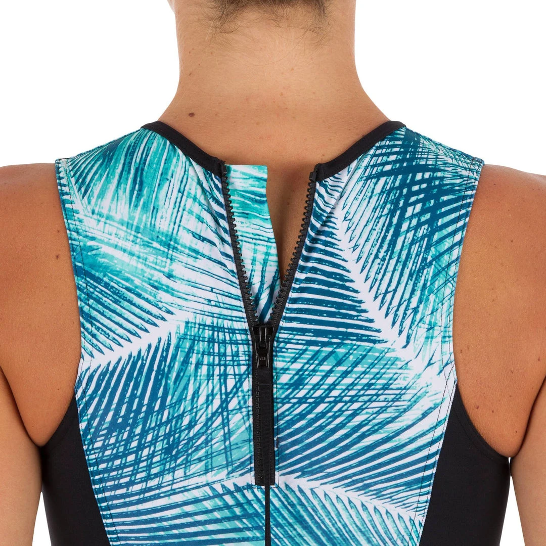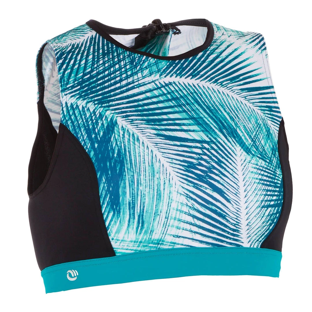 This crop top designed for surfing provides a high level of coverage and a back zip to make it easier to put on; the wide elastic under the bust gives it an excellent fit.