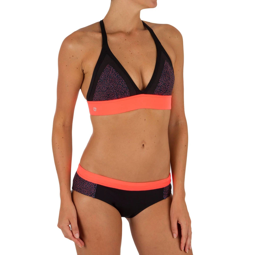 • Stay stylish and comfortable with the Olaian Women’s Surfing Crop Top. Designed for summer adventures, this bikini top features a trendy open back that adds a chic touch to your swimwear collection.