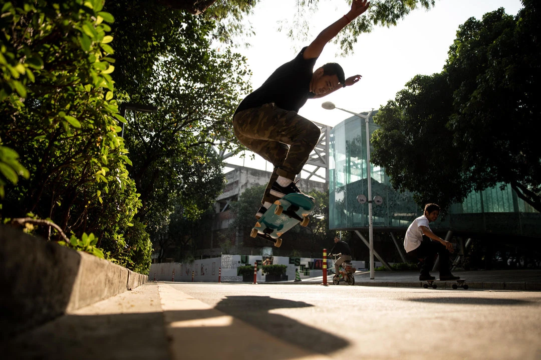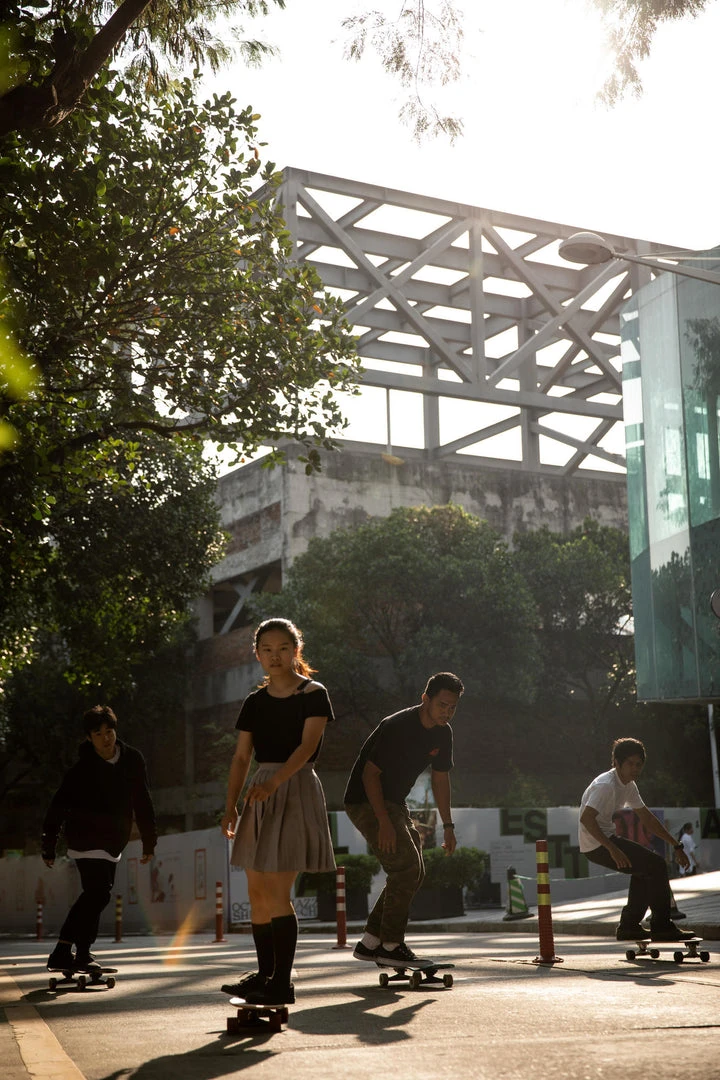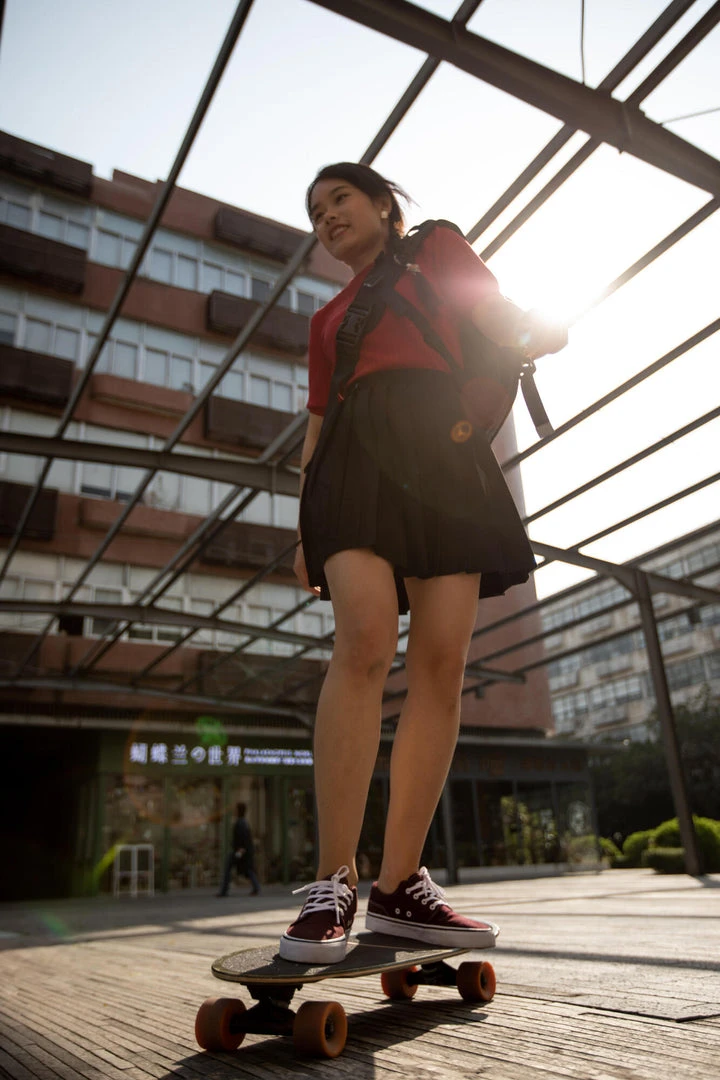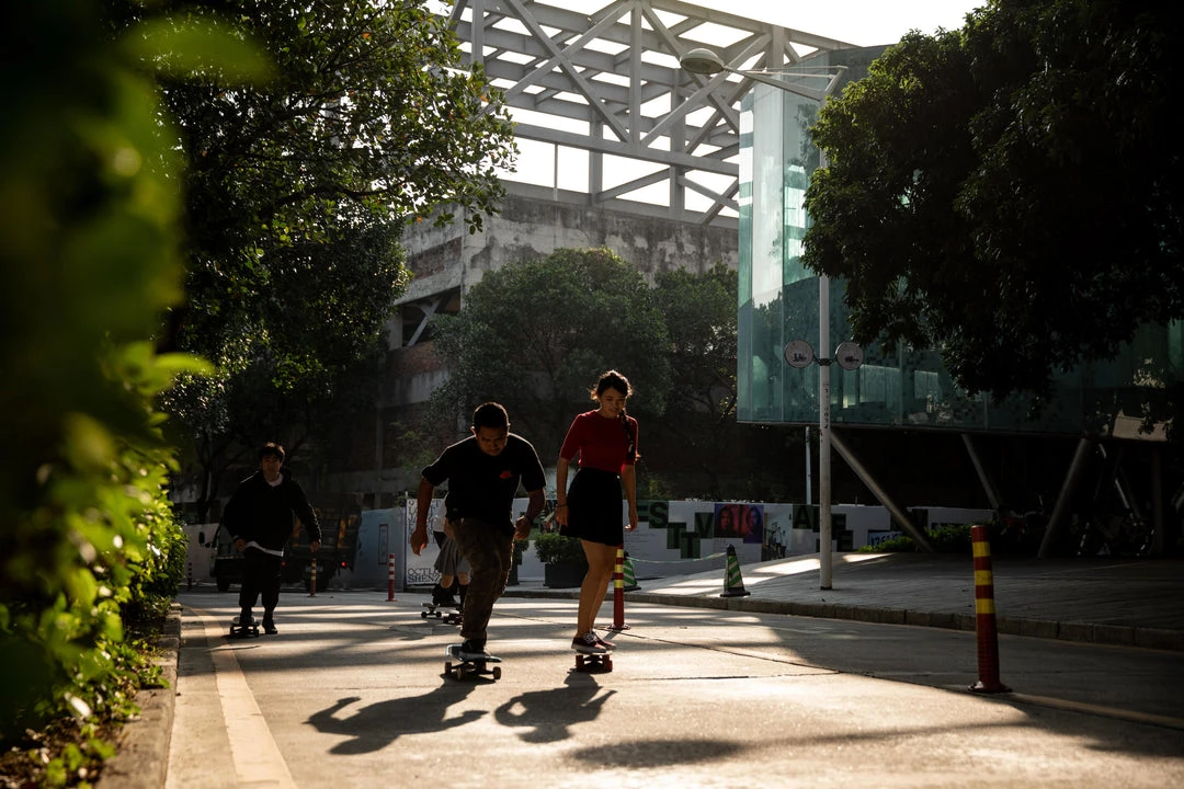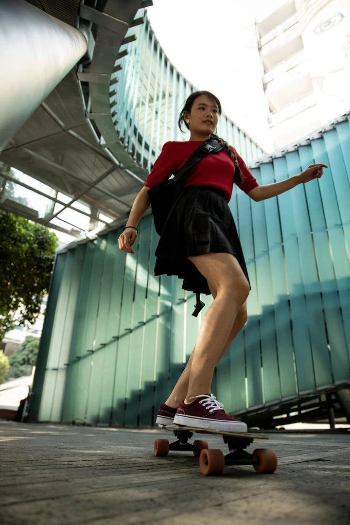 cruising around town on a longboard/cruiser, skateboard or scooter.