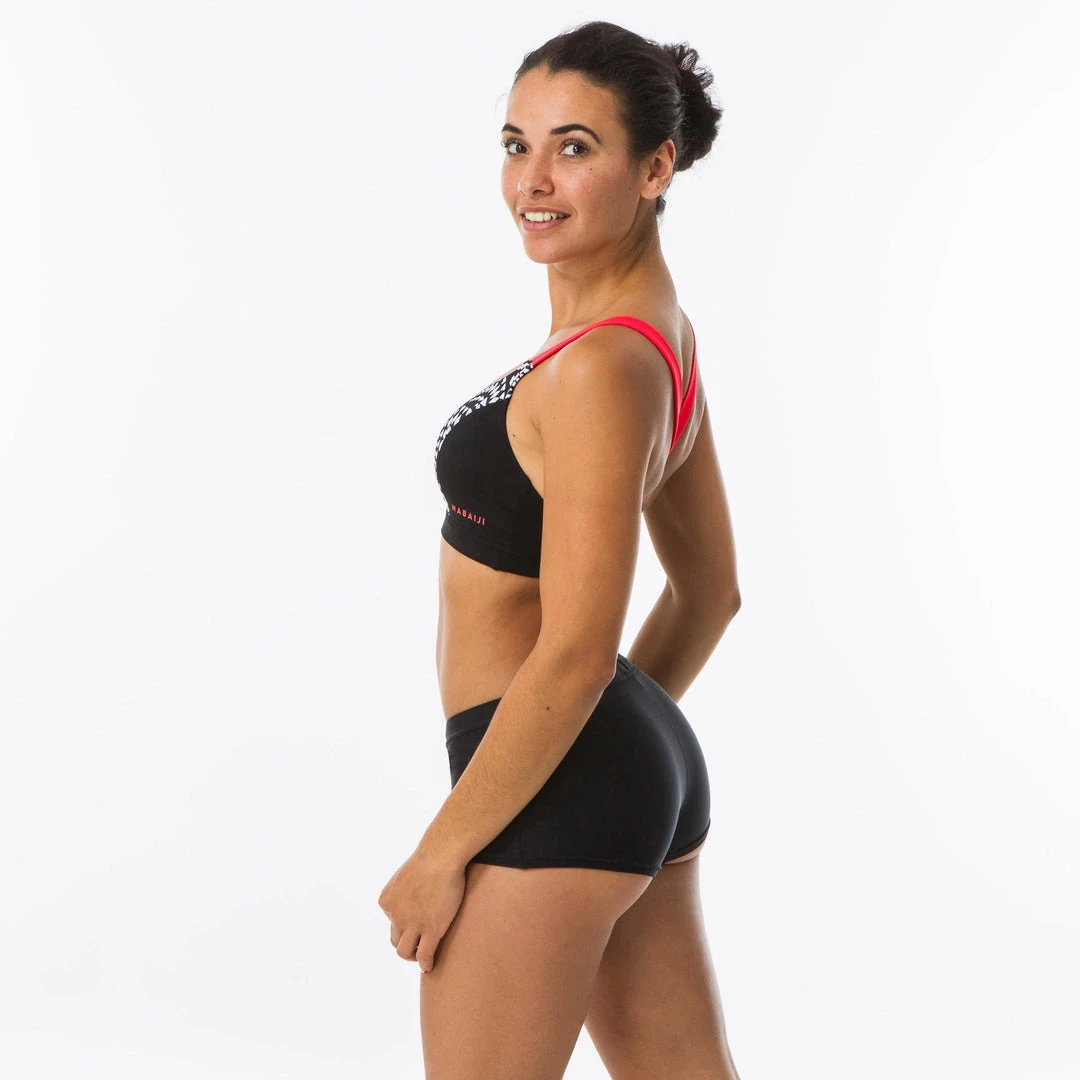 V-shaped back: a swimsuit should focus above all on comfort, to allow you to perform your movements in complete comfort, without getting in your way or hurting you. That is why it is important to choose the cut of the back of your swimsuit carefully. A swimsuit with a closed V-shaped back provides good support in general. Wide elastic under the bust also provides good support.