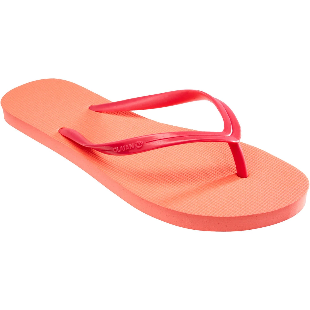 - Crafted with high-quality materials, the Olaian TO100 Flip-Flops offer a durable and lightweight design. The ergonomic footbed ensures all-day comfort and support.