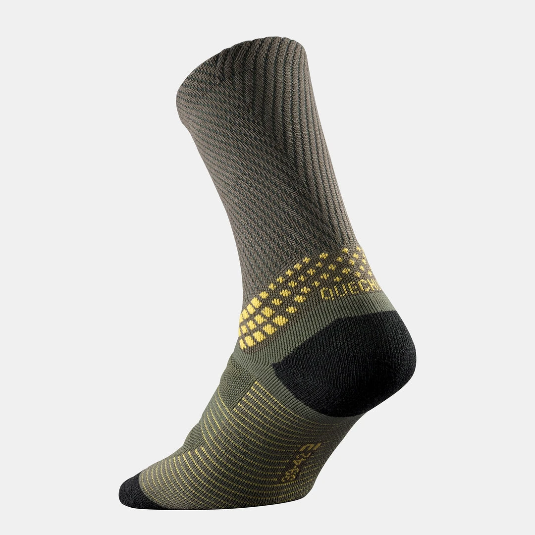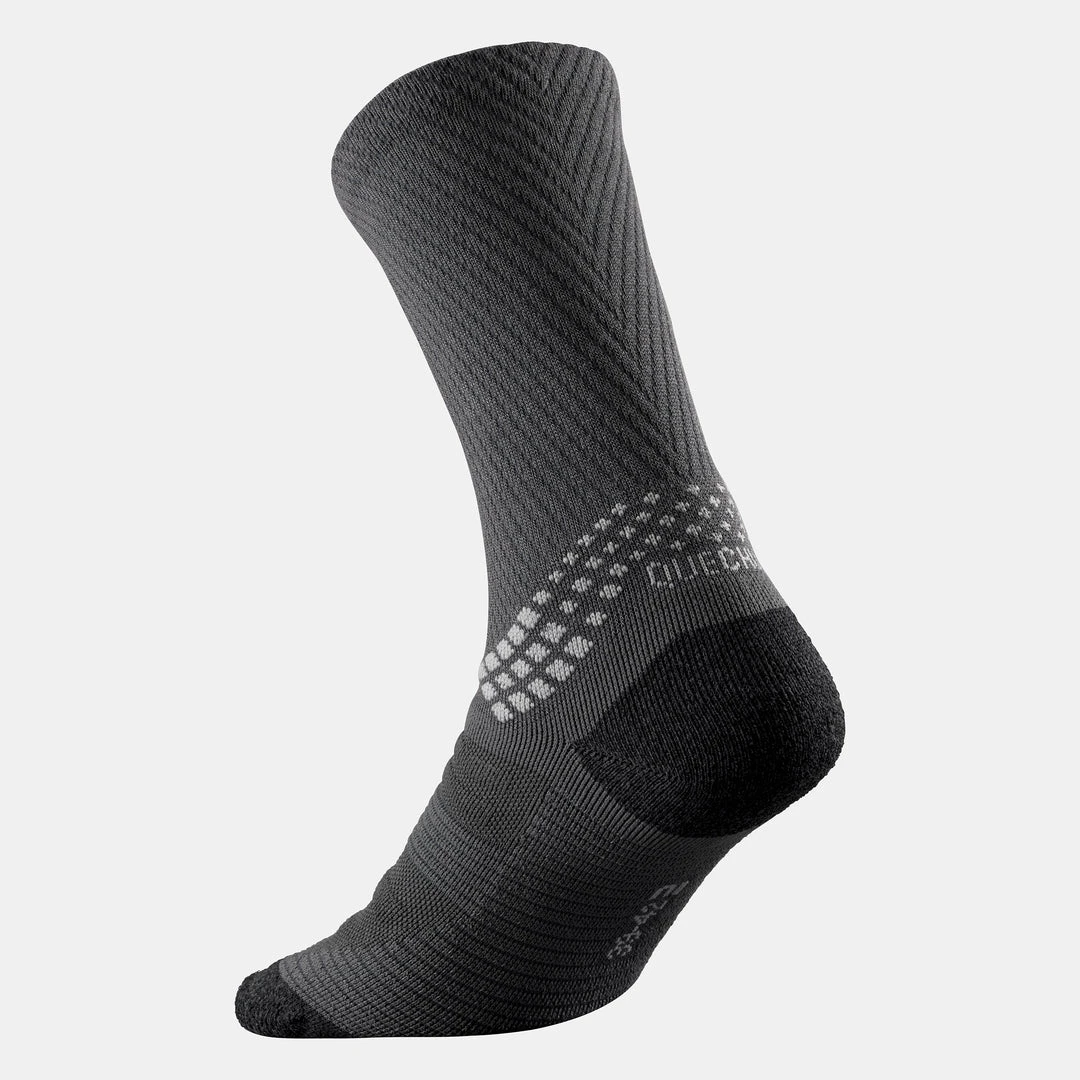 We have selected a technical thread with a specific coating (PTFE) at the heel and toe to reduce rubbing and therefore the risk of blisters. In no circumstances do these socks provide 100% protection from blisters. Blisters usually appear when our skin is weakened by chafing, generally caused by socks, boots, or foreign bodies. Humidity also plays an important role as it weakens our skin.