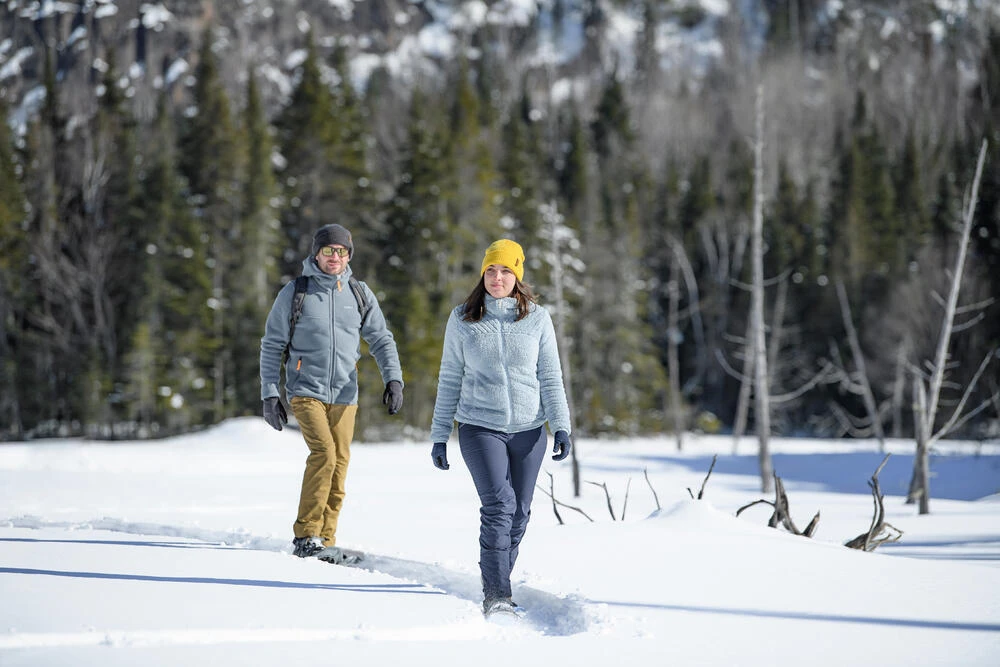 These warm pants with inside fleece shorts are ideal for hiking on snowy paths and trails. Its stretchy inserts and hand warmer pockets provide comfort in use.
